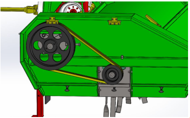 The tractor transmits the power to the gearbox through the drive shaft, which transmits the power to the large pulley on both sides of the drive shaft through the left and right sides. The large pulley passes through the belt to the small pulley and the small pulley drives the seedling shaft to kill the seedlings.